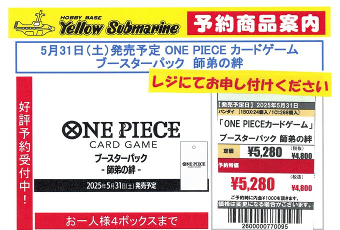 イエローサブマリン、ワンピース師弟の絆予約受付始まっています!