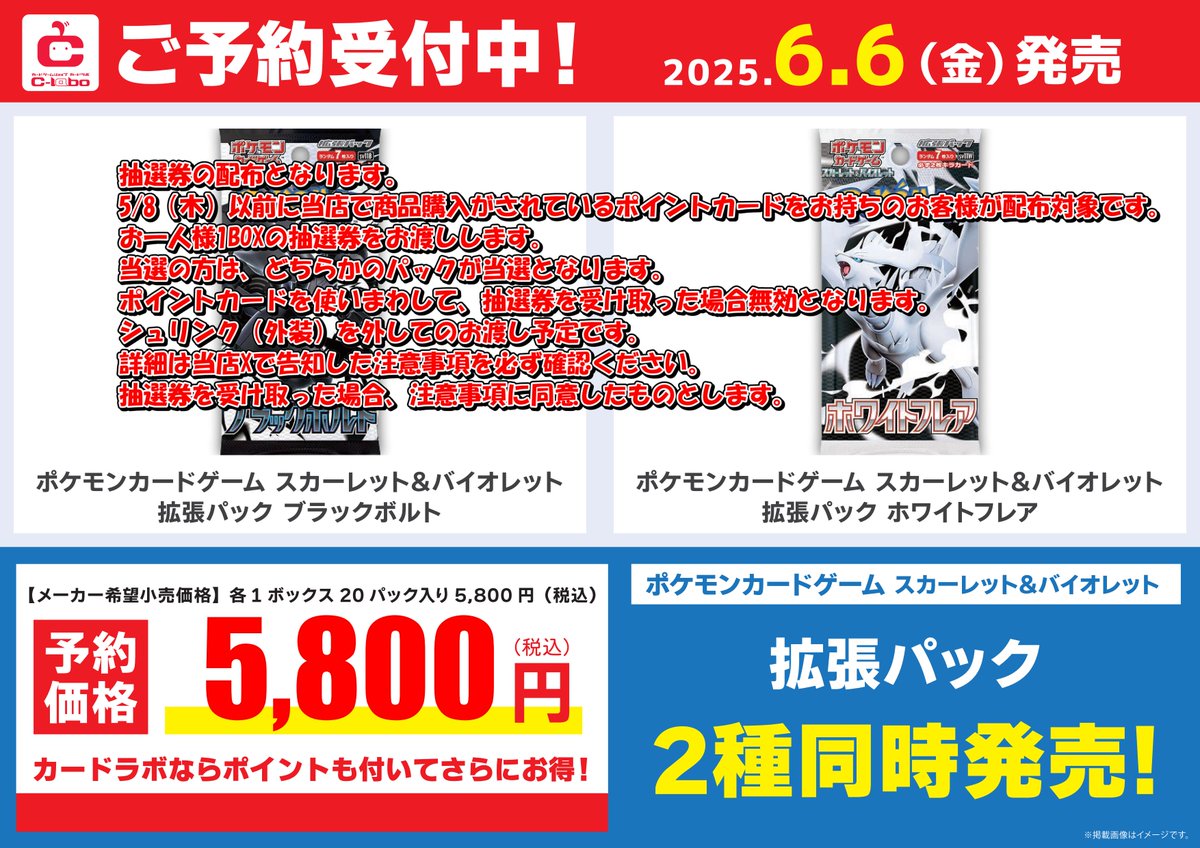 ブラックボルト、ホワイトフレアの抽選、販売について予告アナウンスありました。