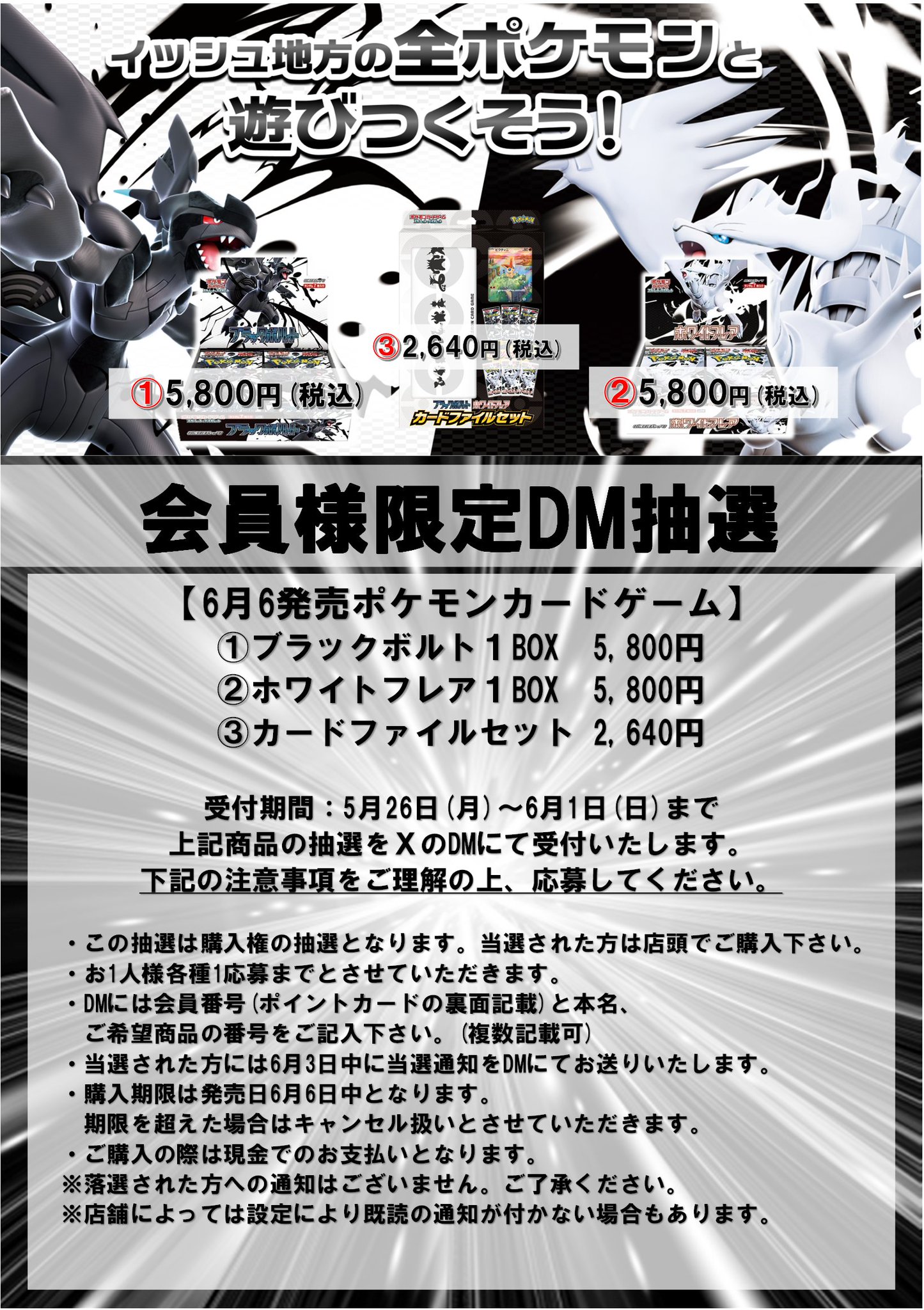 ブラックボルト_ホワイトフレア、それぞれ1回ずつ抽選申込みできると、店頭に記載がありました。