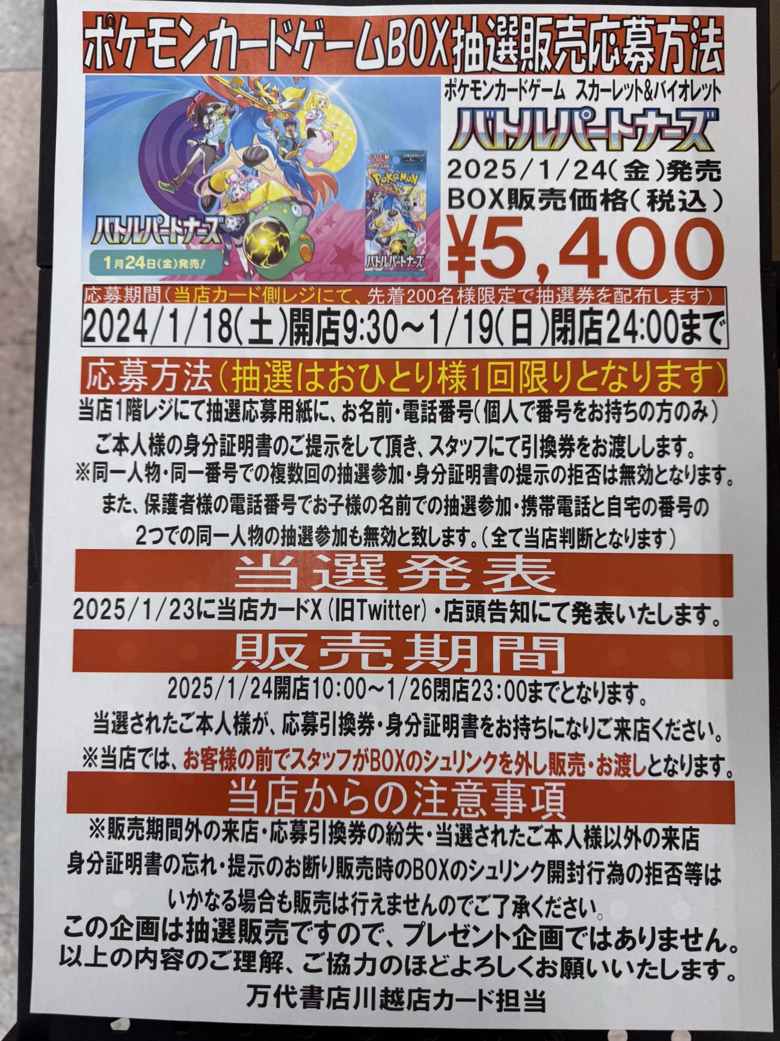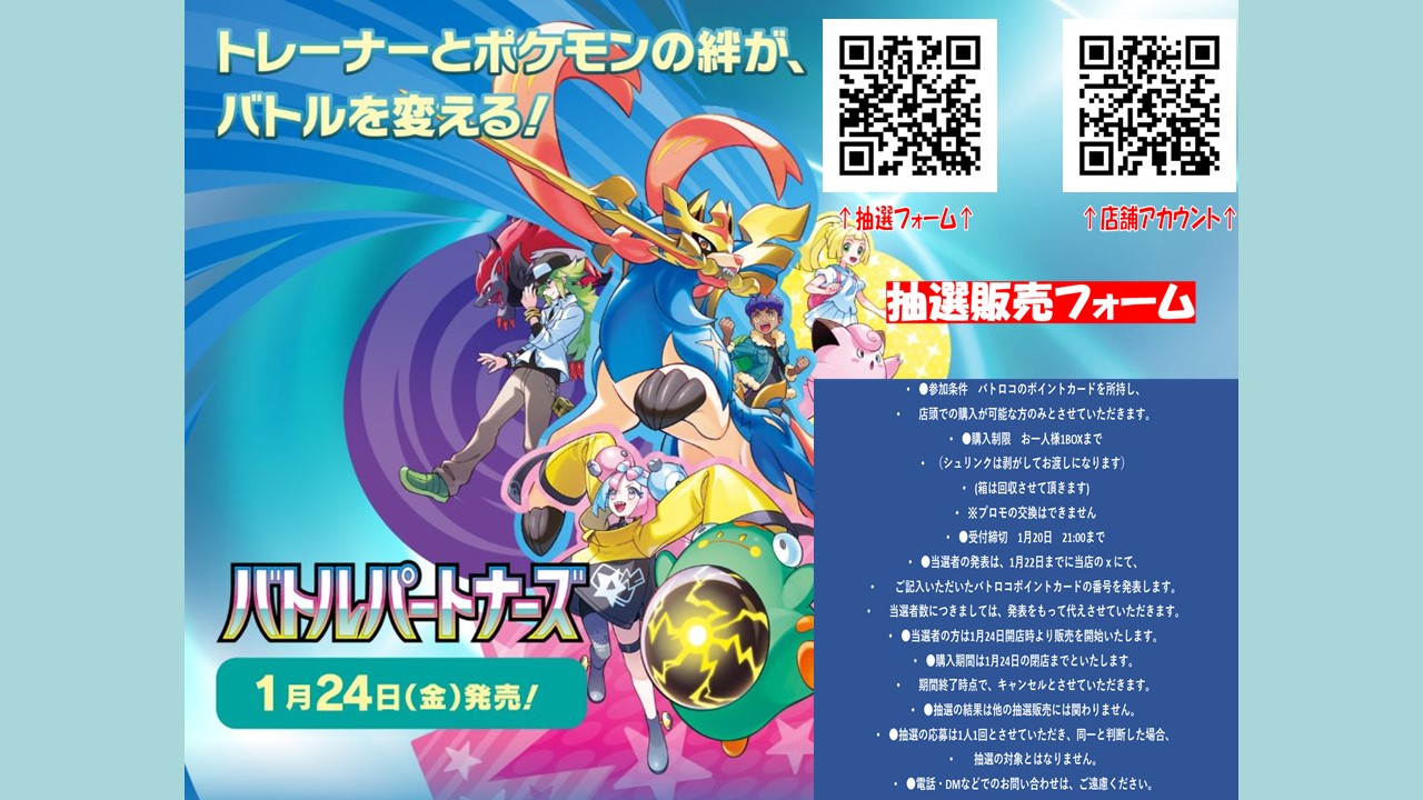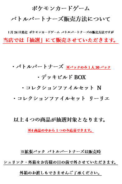 ポケセン各店舗 バトルパートナーズ抽選販売の案内あり