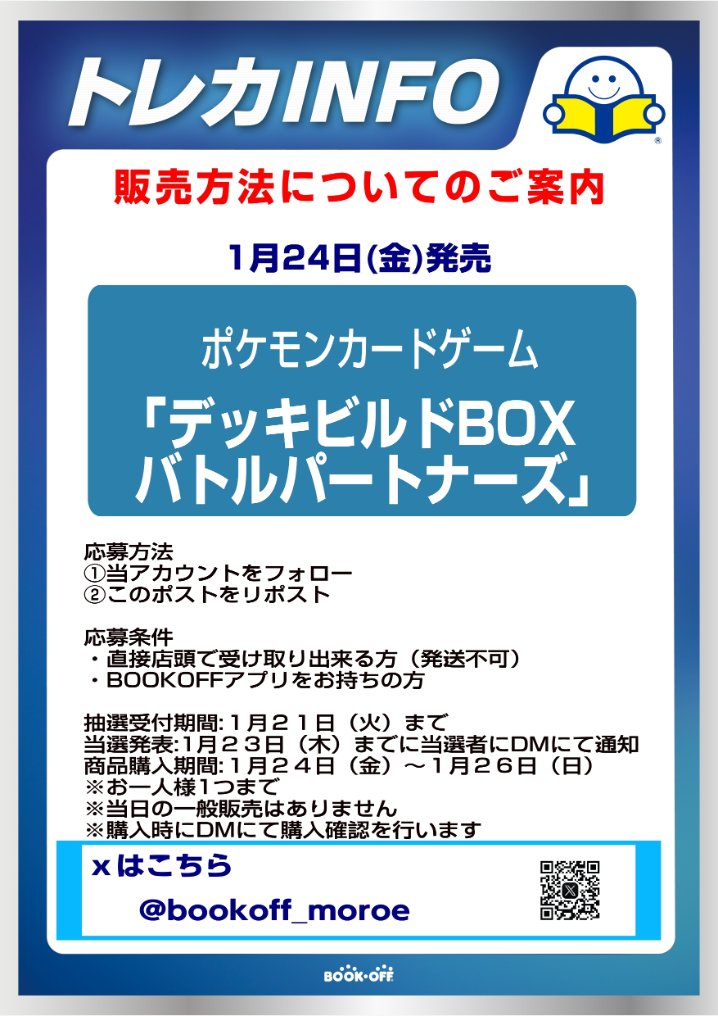 ブックオフ金沢諸江店、バトルパートナーズ抽選開始