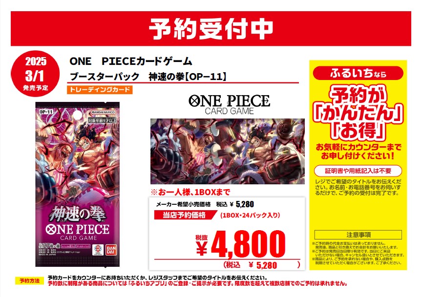 ヨドバシ、ビックカメラ以外の大手量販店やコンビニエンスストアなどの店舗でも、毎週の様にポケモンカード、ワンピースカード、遊戯王カードの店頭販売が行われています!