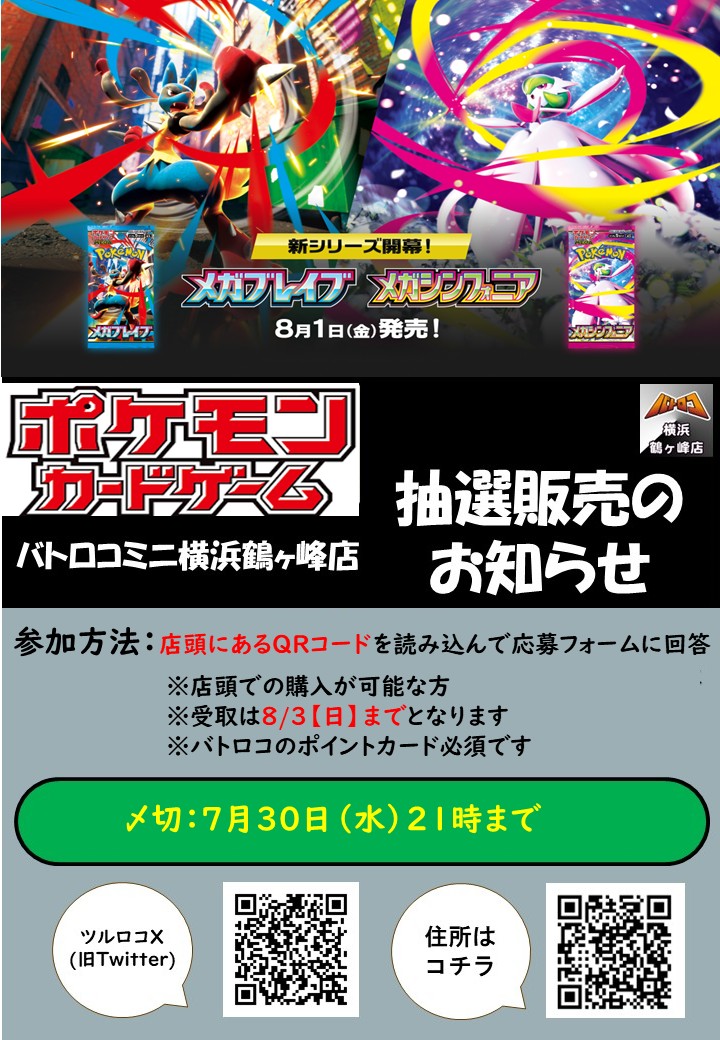 【バトロコミニ横浜鶴ヶ峰店 ポケカ抽選開始✨】