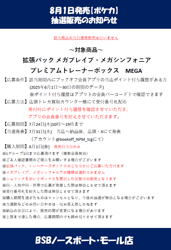 【ブックオフ港北ノースポートモール ポケカ抽選開始✨】