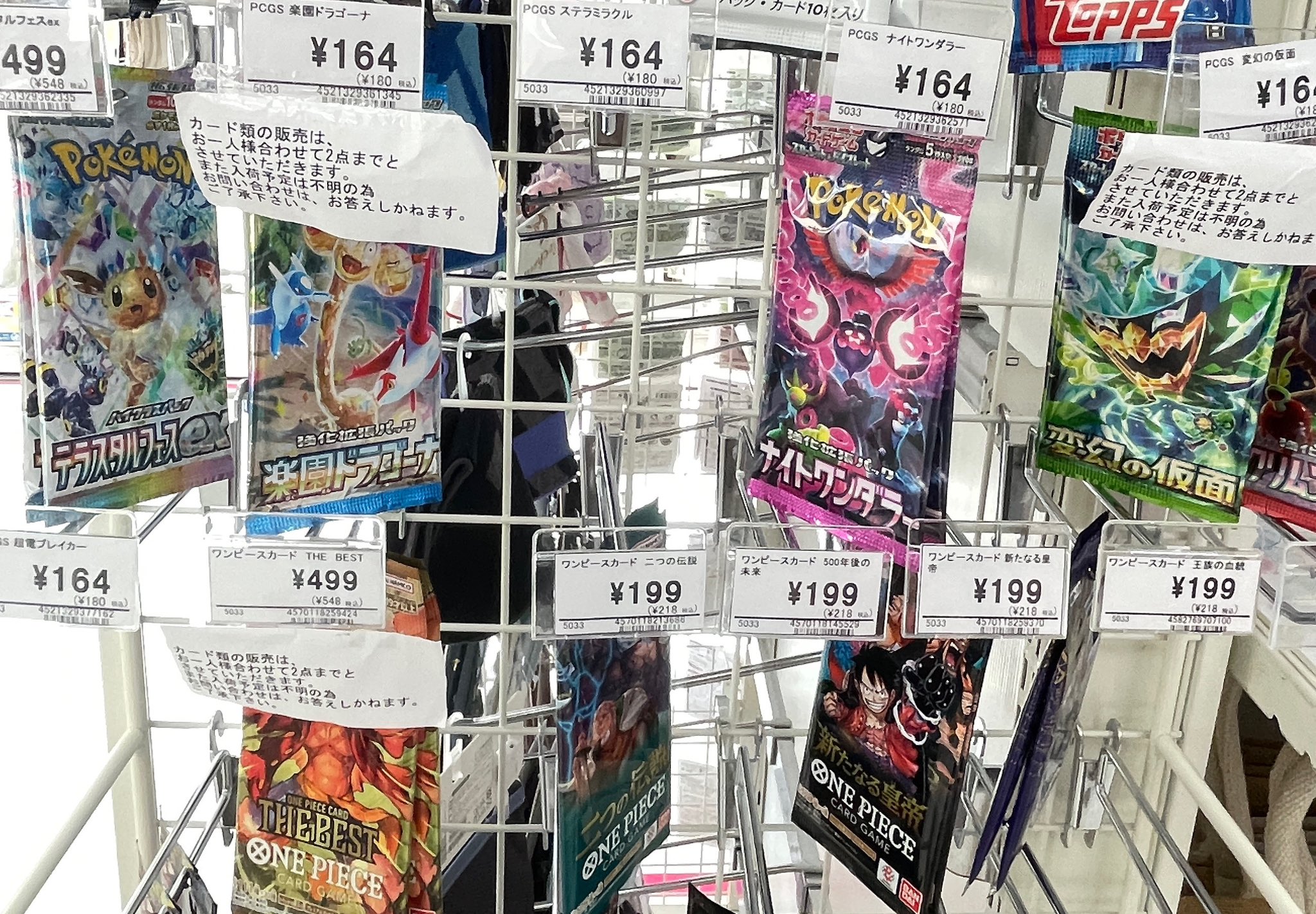 ヨドバシ、ビックカメラ以外の大手量販店やコンビニエンスストアなどの店舗でも、毎週の様にポケモンカード、ワンピースカード、遊戯王カードの店頭販売が行われています!