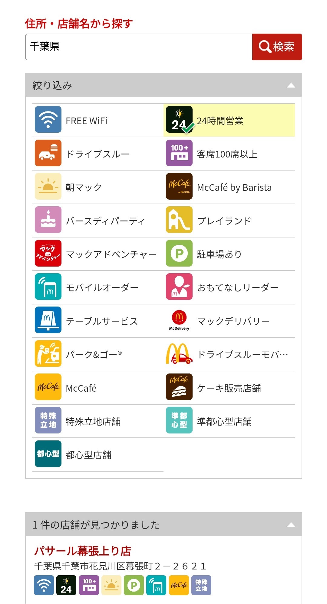 明日からのマクドナルドのプロモ、最速5時からですがそもそも24H営業店が減ってるので行こうとしてる店舗の開店時間は必ず公式サイトで確認しましょう。地元の店がいつの間にか24Hじゃなくなってたので検索してみたら都心は結構24H営業店あったけど千葉県はPAにある1店舗だけでした…。