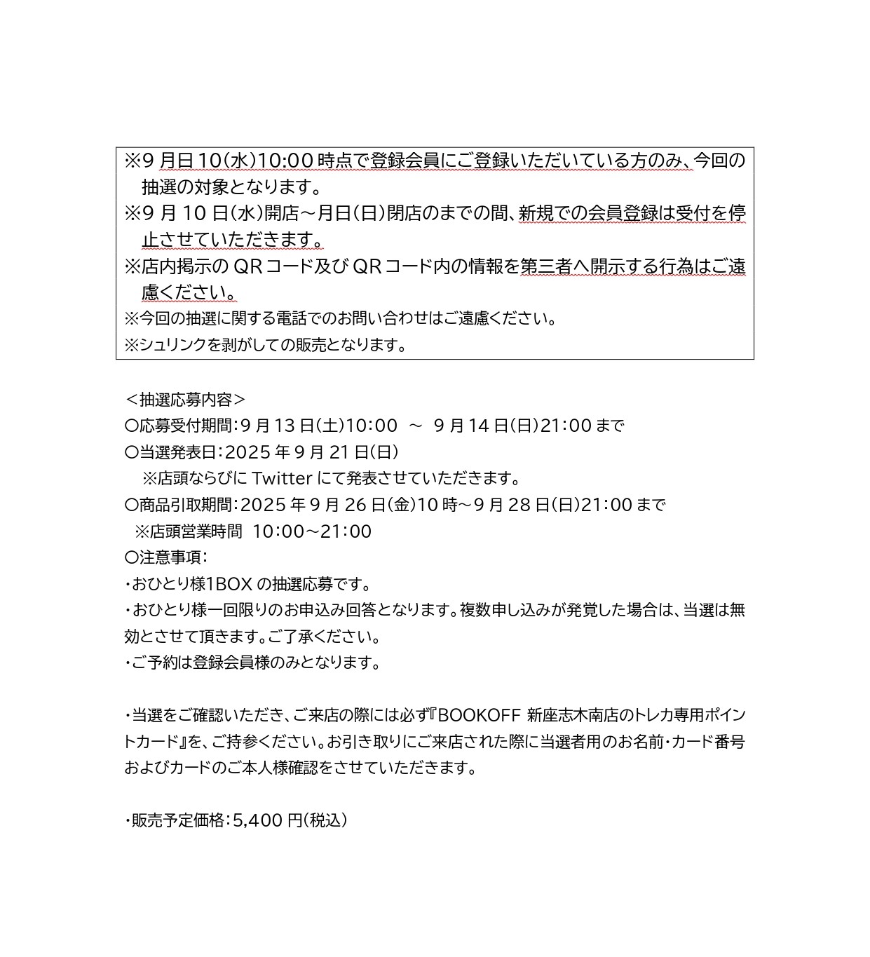 ◯応募期間 2025年9月10日9:30 ~ 9月15日21:45