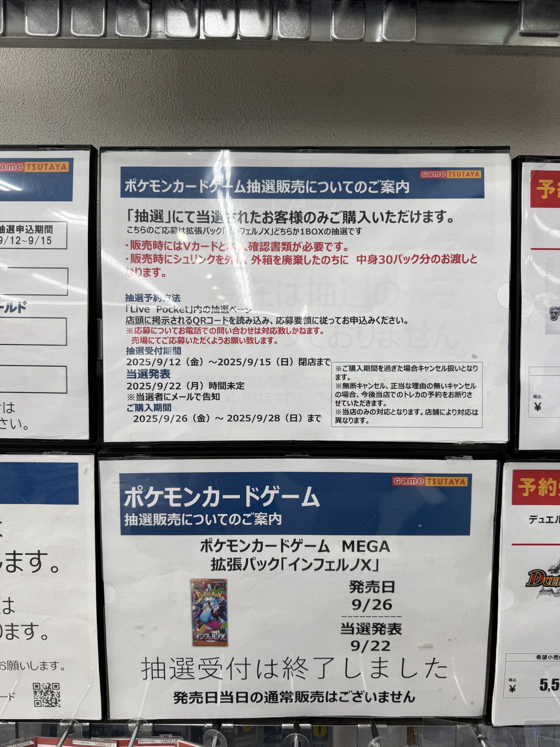 TSUTAYA東所沢店、店頭にて抽選番号張り出してるらしいです!