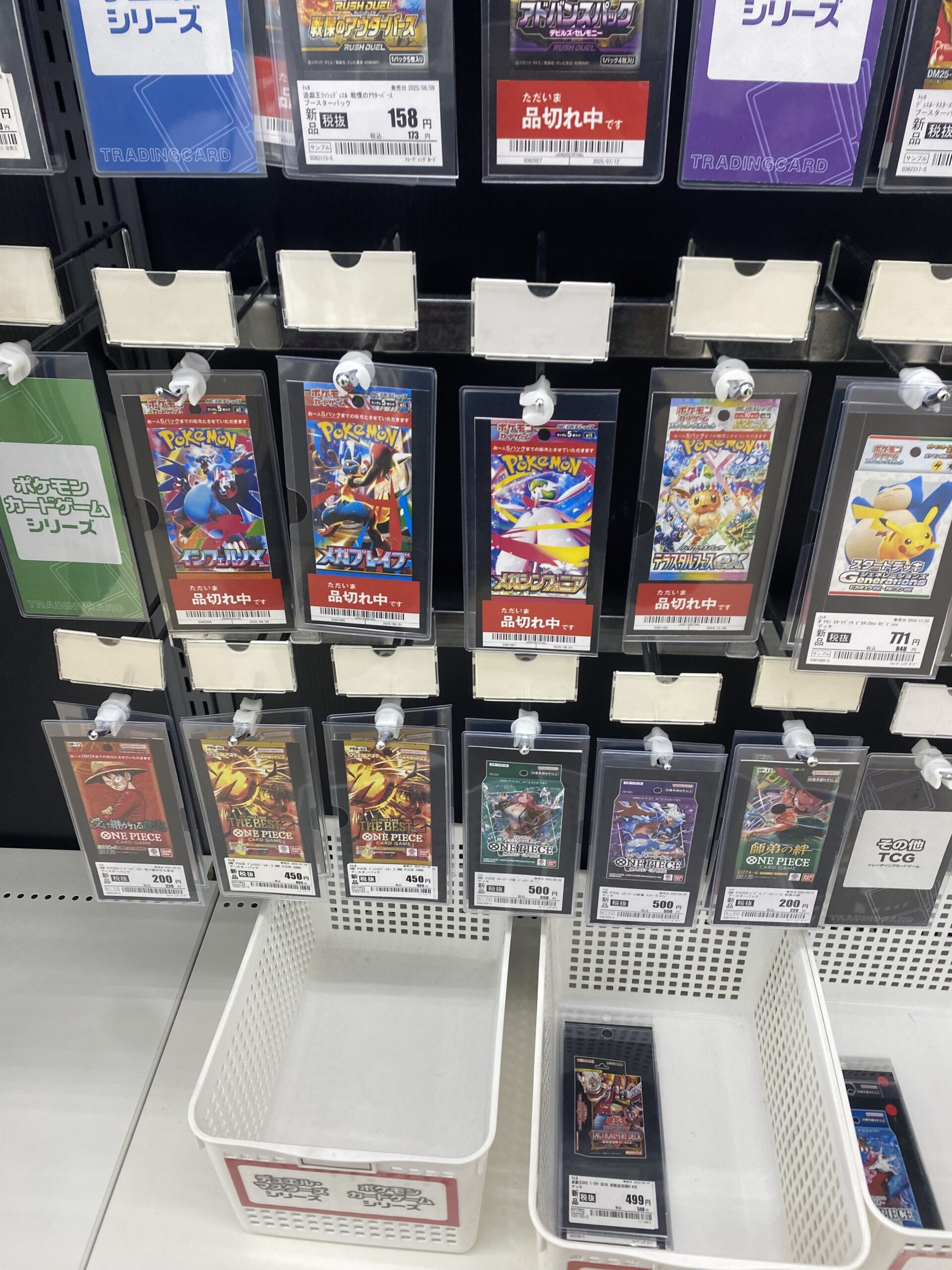ヨドバシ、ビックカメラ以外の大手量販店やコンビニエンスストアなどの店舗でも、毎週の様にポケモンカード、ワンピースカード、遊戯王カードの店頭販売が行われています!