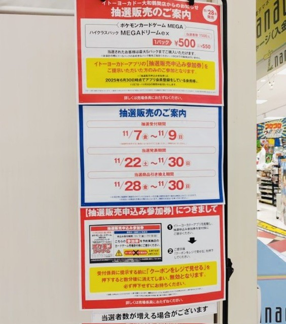 ヨドバシ、ビックカメラ以外の大手量販店やコンビニエンスストアなどの店舗でも、毎週の様にポケモンカード、ワンピースカード、遊戯王カードの店頭販売が行われています!