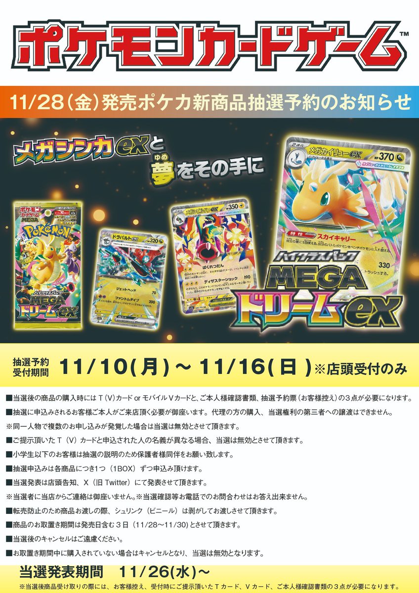 【イエローサブマリン各店舗 ポケカ抽選開始✨】