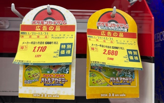ヨドバシ、ビックカメラ以外の大手量販店やコンビニエンスストアなどの店舗でも、毎週の様にポケモンカード、ワンピースカード、遊戯王カードの店頭販売が行われています!