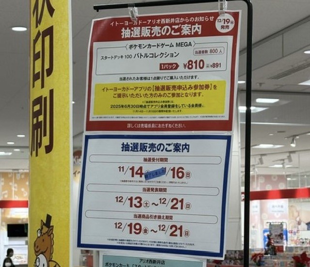 ヨドバシ、ビックカメラ以外の大手量販店やコンビニエンスストアなどの店舗でも、毎週の様にポケモンカード、ワンピースカード、遊戯王カードの店頭販売が行われています!