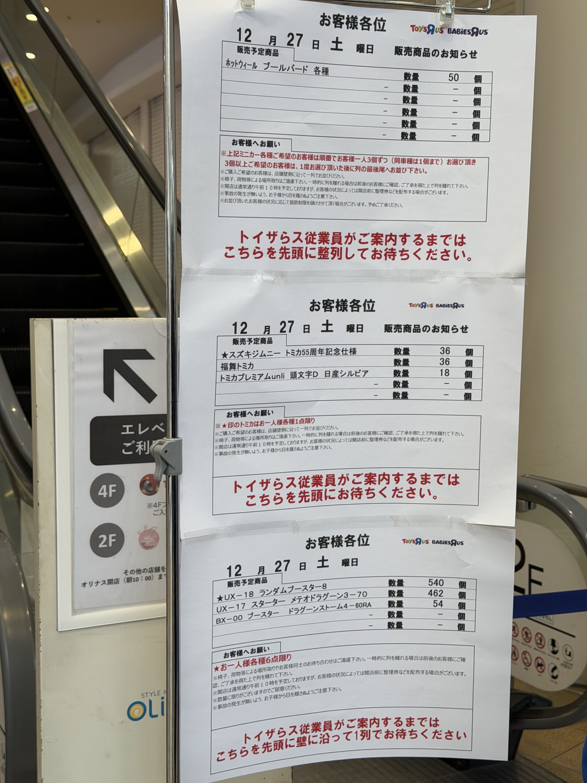 ららぽーと横浜と大和鶴間は日曜販売になりそうなので明日は蘇我アリオかトイザらス行くのが正解ですね
