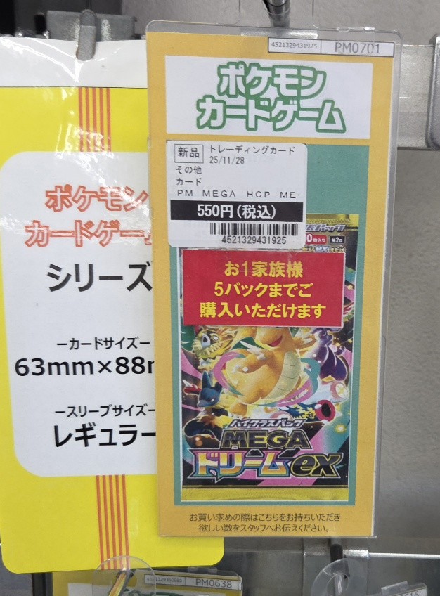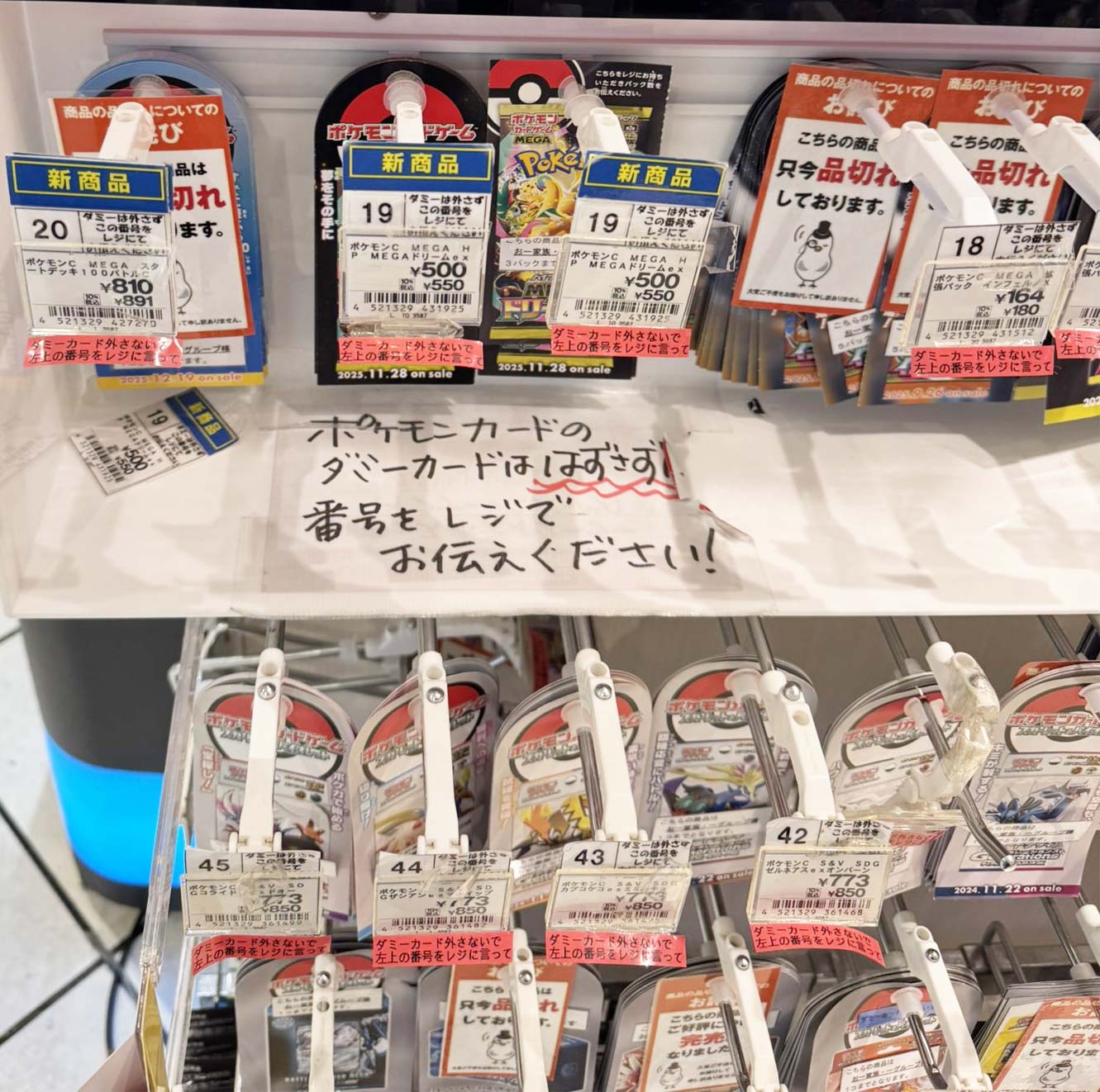 おもちゃレジ横のポケカコーナー左隅に札あります
