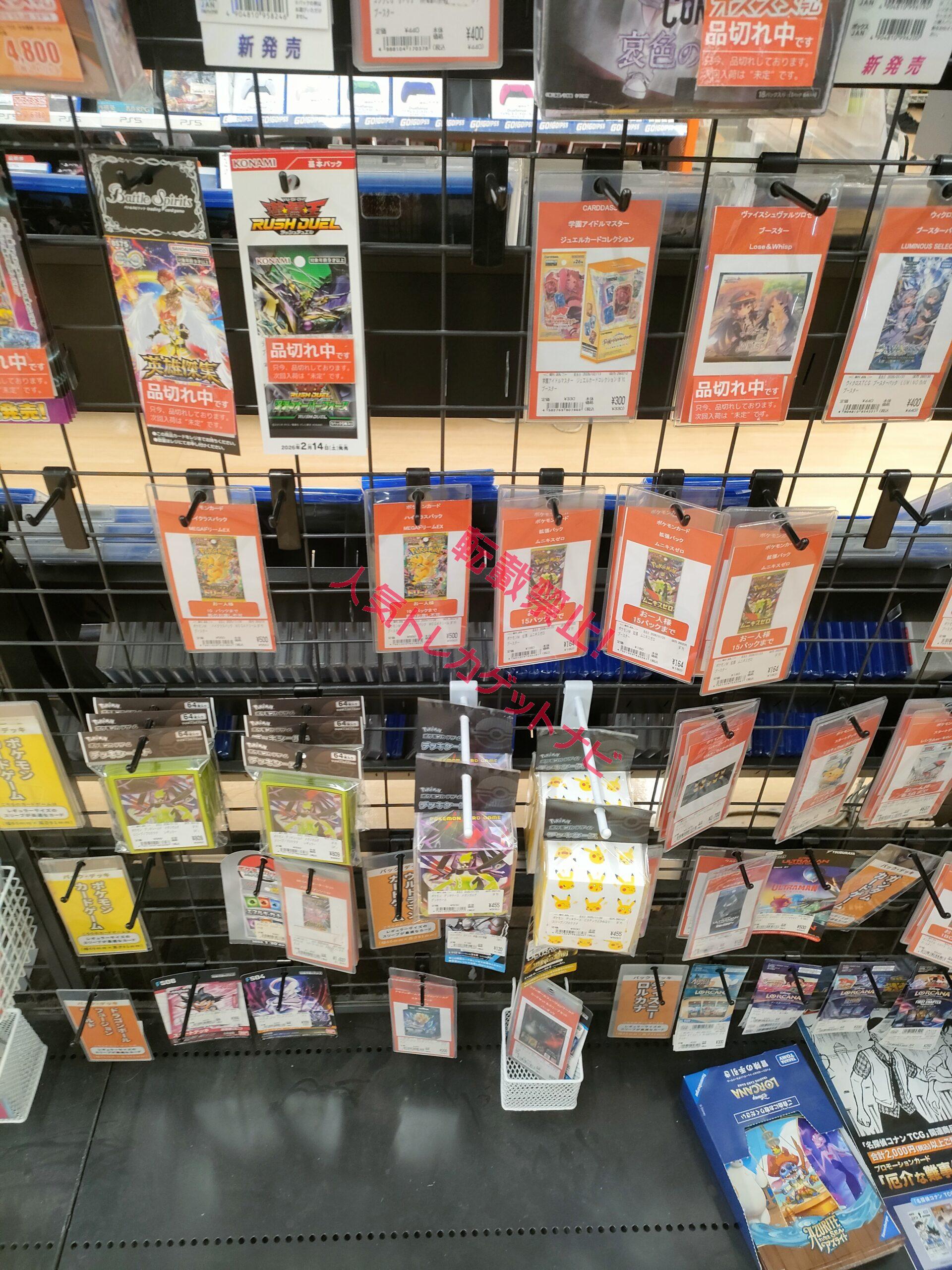 大手スーパーマーケットチェーンのイオンやイトーヨーカドー、大手書店のTSUTAYA、ブックオフ、ゲーム販売店舗のゲオ、トイザラスなどでトレカ販売が頻繁に実施されています!