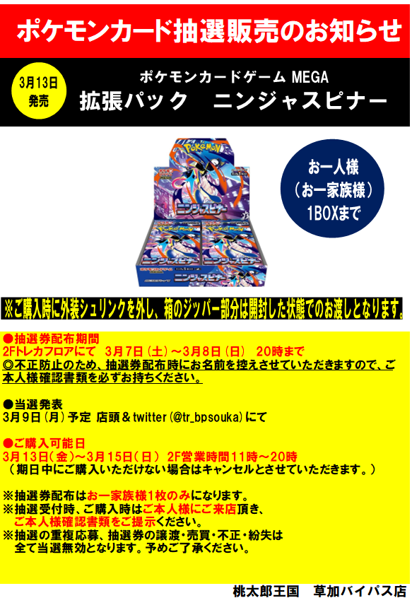 大手スーパーマーケットチェーンのイオンやイトーヨーカドー、大手書店のTSUTAYA、ブックオフ、ゲーム販売店舗のゲオ、トイザラスなどでトレカ販売が頻繁に実施されています!