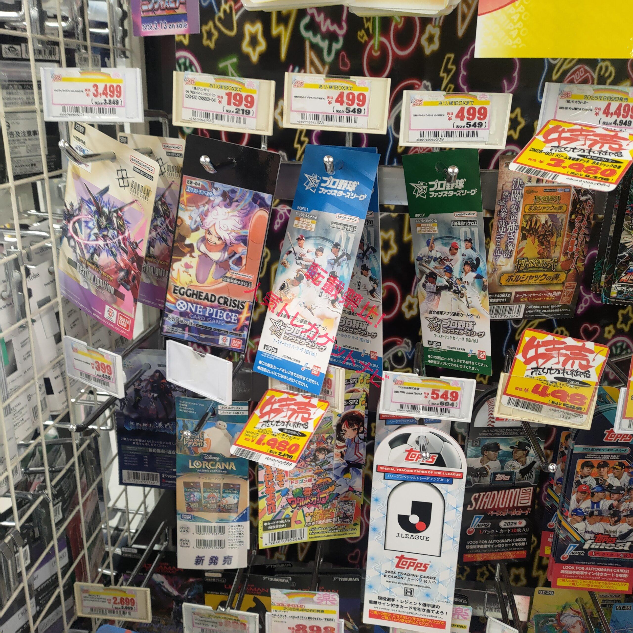 大手スーパーマーケットチェーンのイオンやイトーヨーカドー、大手書店のTSUTAYA、ブックオフ、ゲーム販売店舗のゲオ、トイザラスなどでトレカ販売が頻繁に実施されています!