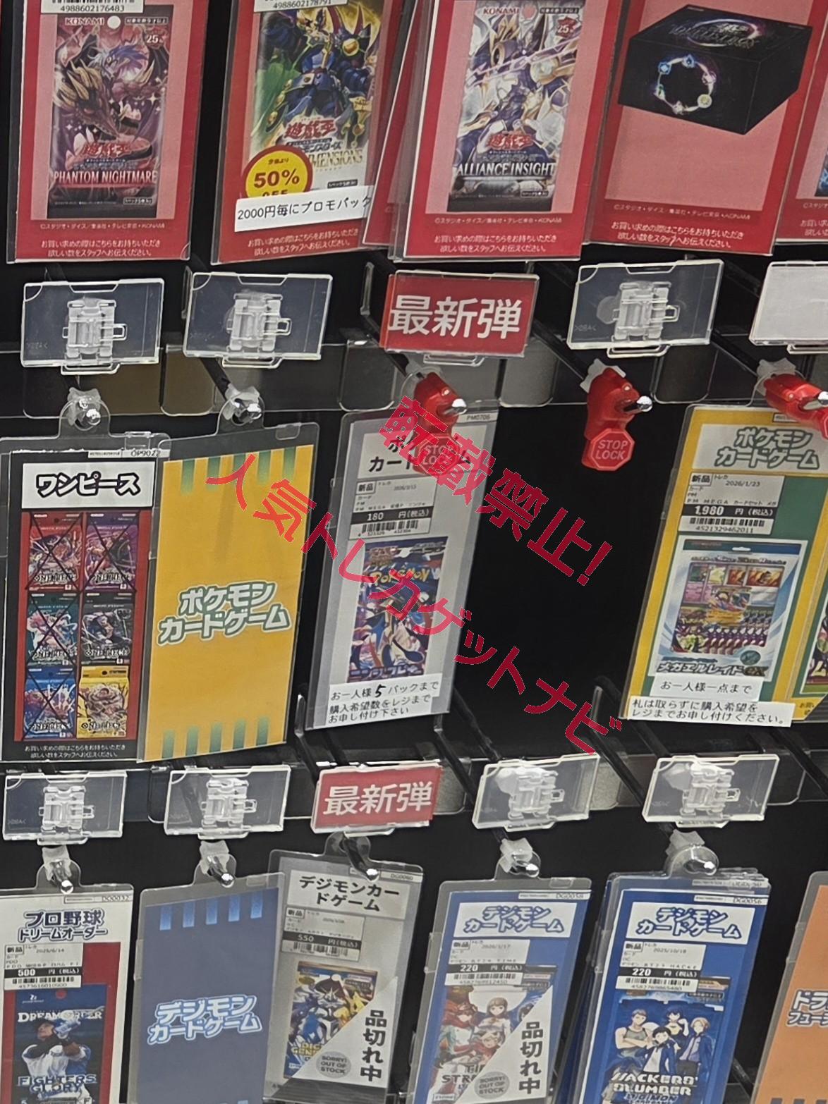 ヨドバシ、ビックカメラ以外の大手量販店やコンビニエンスストアなどの店舗でも、毎週の様にポケモンカード、ワンピースカード、遊戯王カードの店頭販売が行われています!