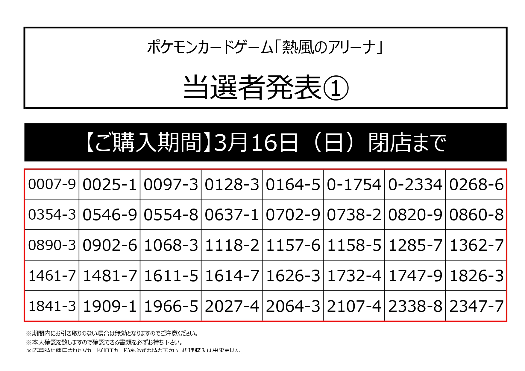 TSUTAYA伊奈店、熱風のアリーナ抽選結果発表されています!応募された人はご確認くださいませ。