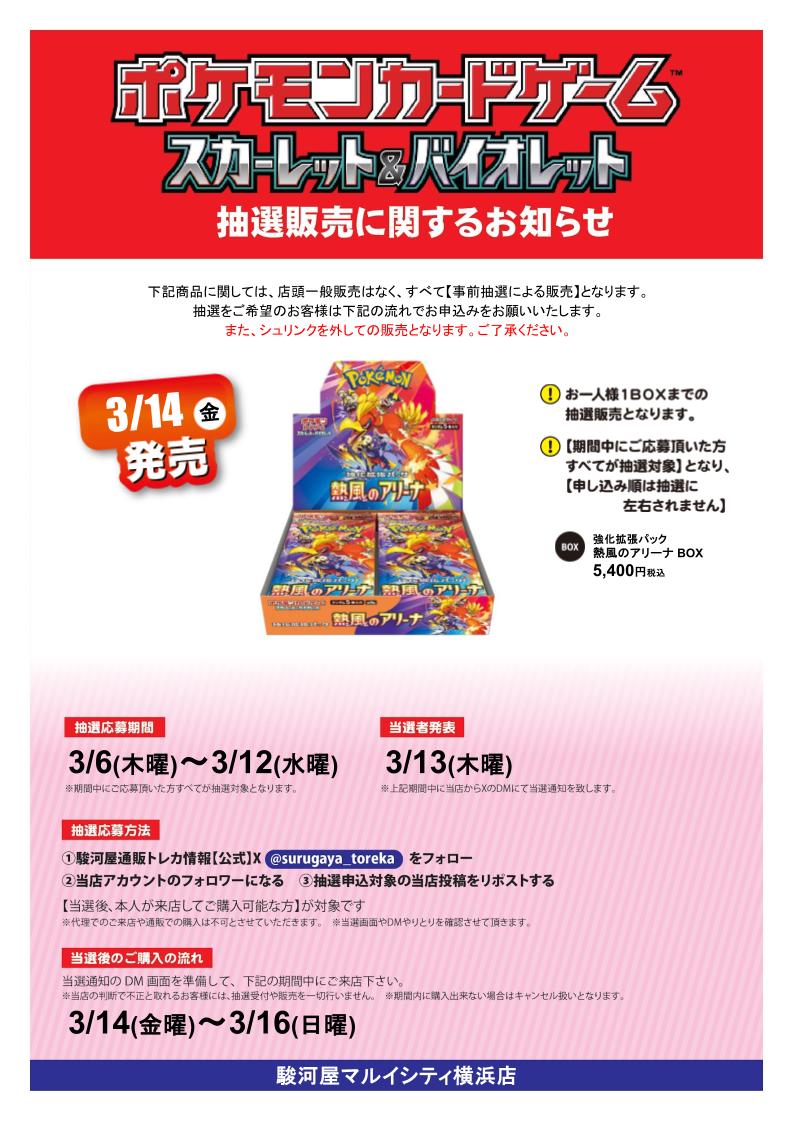 駿河屋マルイシティ横浜店、熱風のアリーナ抽選販売応募受付中です。