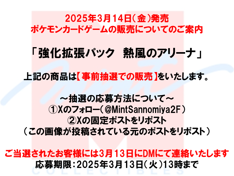 MINT吉祥寺店、熱風のアリーナとポケカBOX3つ入りの福袋販売の抽選販売応募受付始まりました!