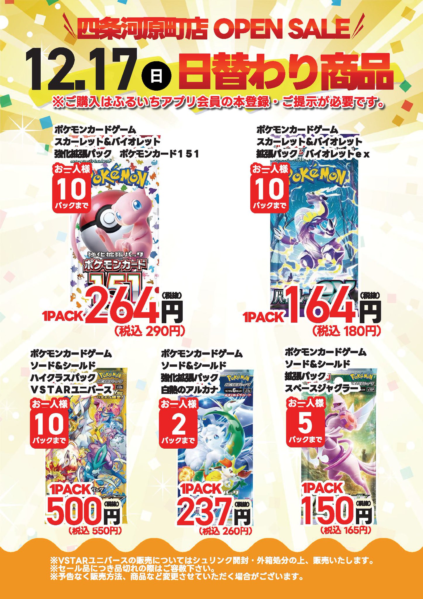 ヨドバシ、ビックカメラ以外の大手量販店やコンビニエンスストアなどの店舗でも、毎週の様にポケモンカード、ワンピースカード、遊戯王カードの店頭販売が行われています!