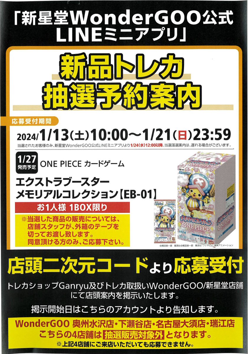 ふるいちは、ワンピースカード 新弾は今回から抽選になりましたね。