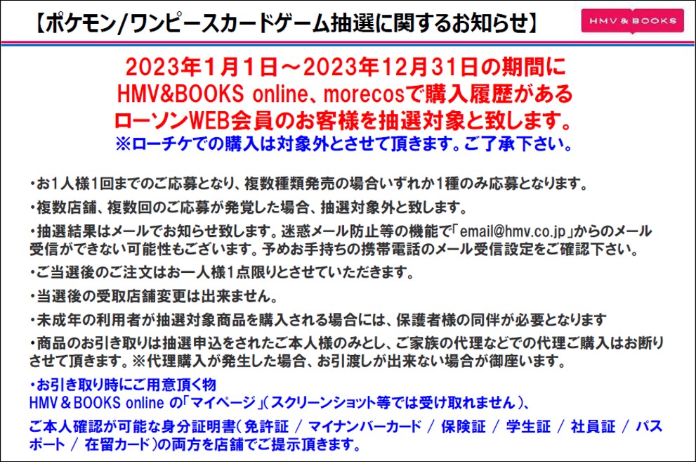2024年からポケモンカード、ワンピースカード 抽選条件変更