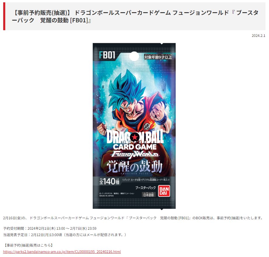 ドラゴンボールスーパーカードゲーム公式抽選始まりました!