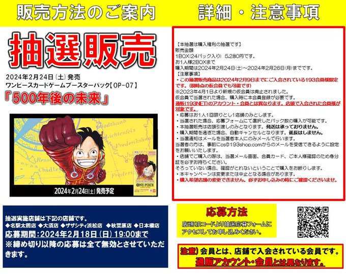 カード王 心斎橋でワンピースカード新弾抽選受付