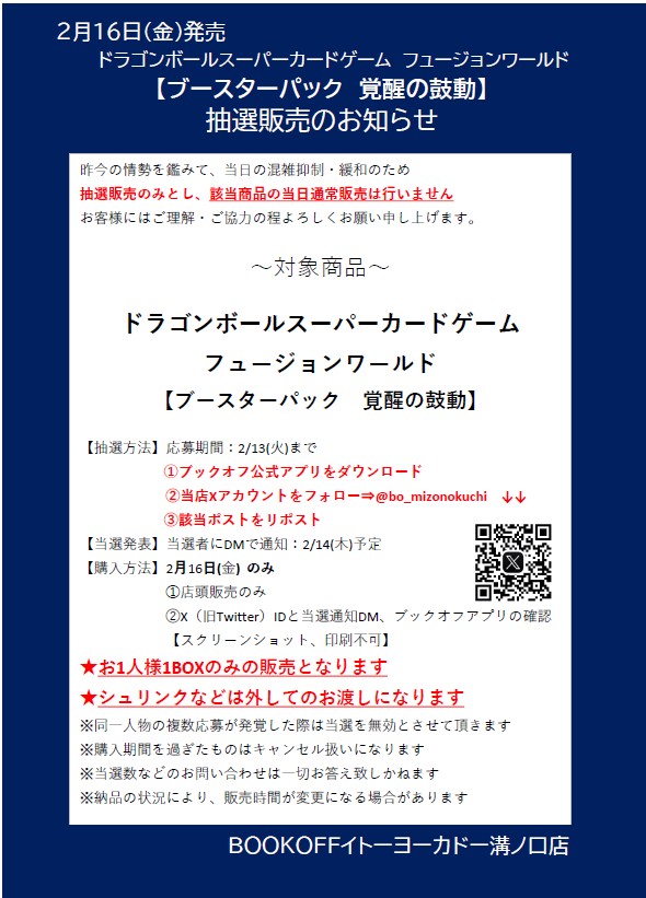 ブックオフ溝の口、ドラゴンボールスーパーカードゲーム抽選受付開始!