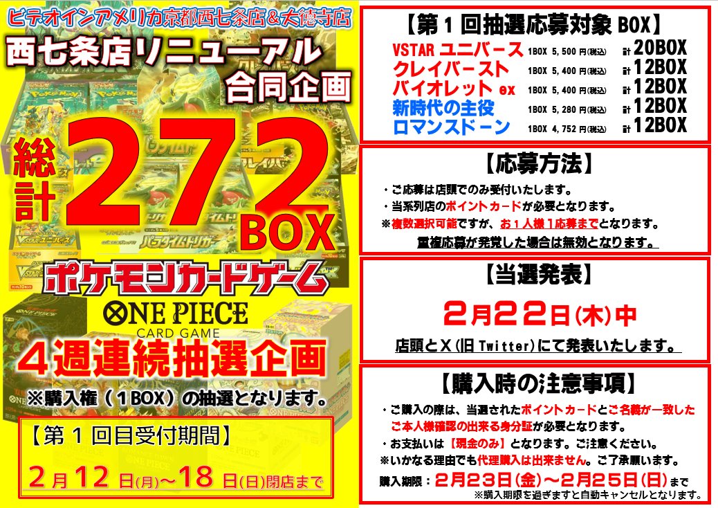 ヨドバシ、ビックカメラ以外の大手量販店やコンビニエンスストアなどの店舗でも、毎週の様にポケモンカード、ワンピースカード、遊戯王カードの店頭販売が行われています!