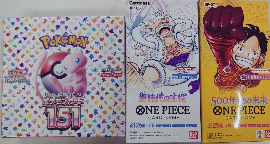 ヨドバシ、ビックカメラ以外の大手量販店やコンビニエンスストアなどの店舗でも、毎週の様にポケモンカード、ワンピースカード、遊戯王カードの店頭販売が行われています!
