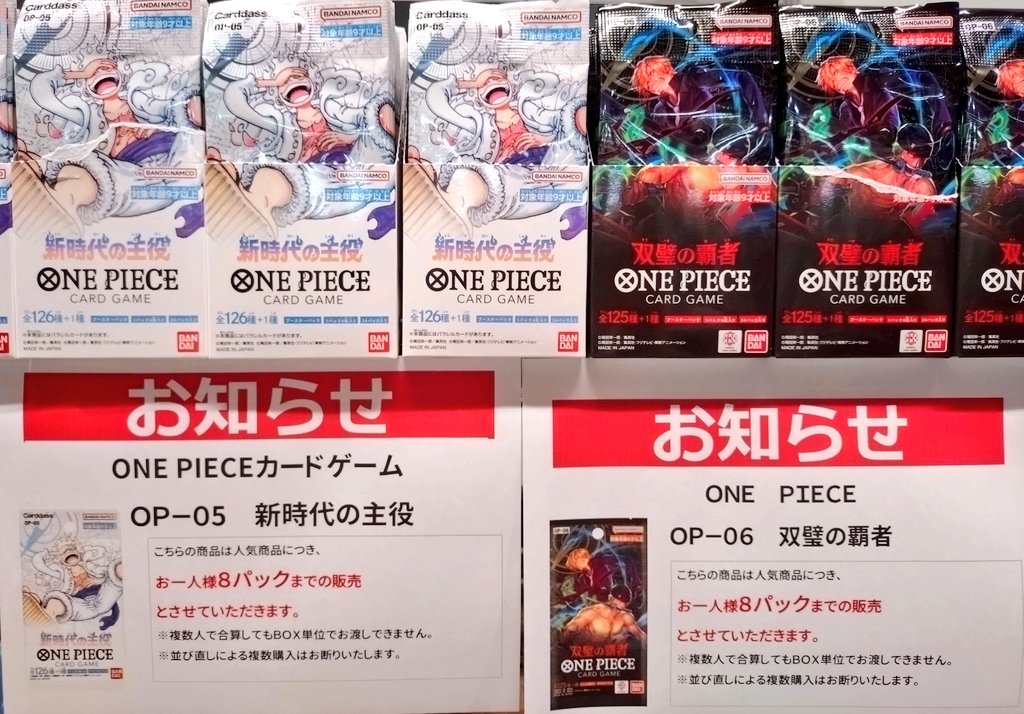 ヨドバシ、ビックカメラ以外の大手量販店やコンビニエンスストアなどの店舗でも、毎週の様にポケモンカード、ワンピースカード、遊戯王カードの店頭販売が行われています!