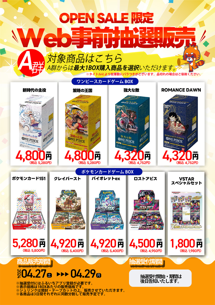 ヨドバシ、ビックカメラ以外の大手量販店やコンビニエンスストアなどの店舗でも、毎週の様にポケモンカード、ワンピースカード、遊戯王カードの店頭販売が行われています!