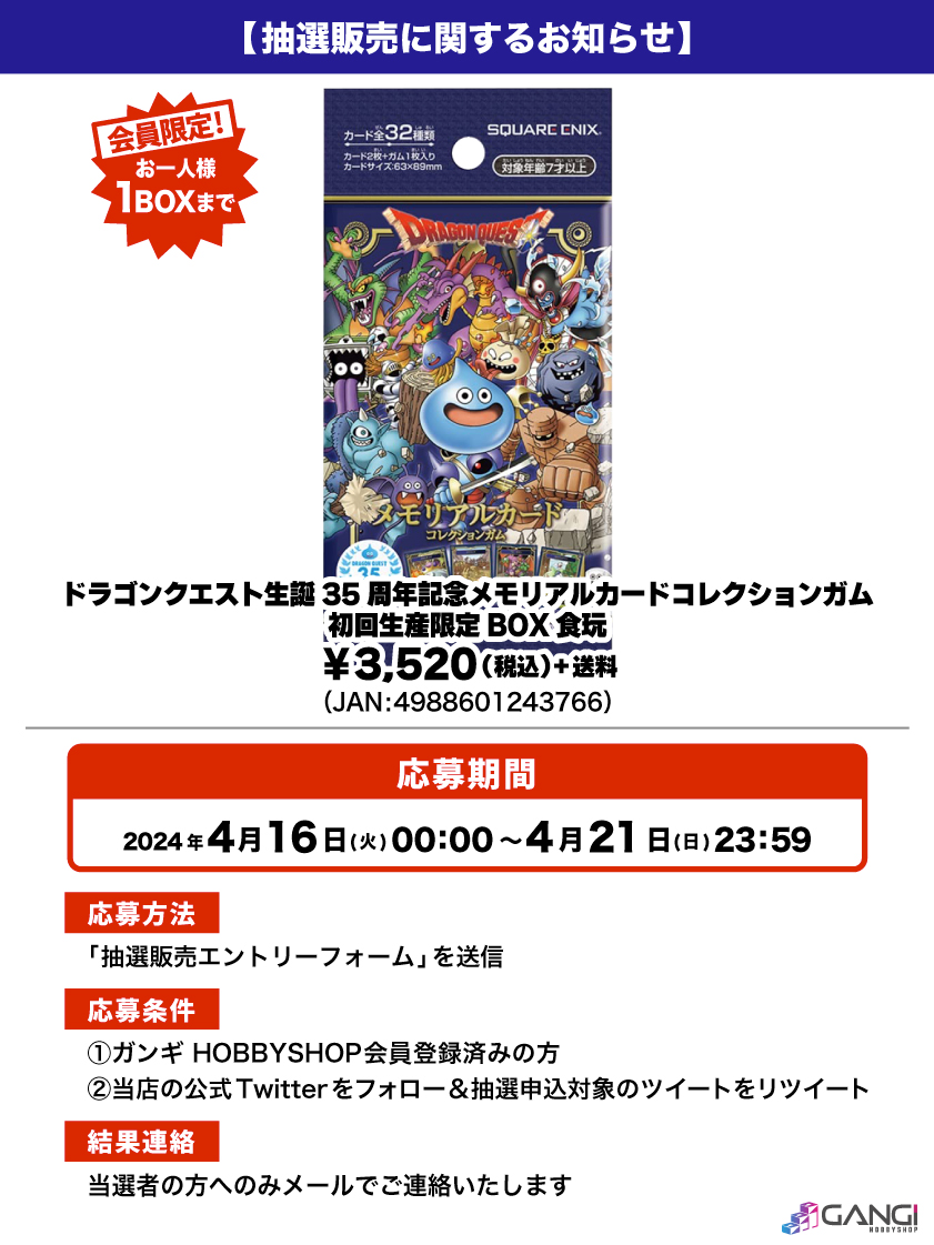 ドラゴンクエストメモリアルカードコレクションBOXの抽選開始です!