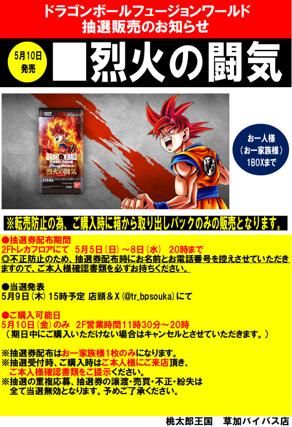 桃太郎王国草加 烈火の闘気 抽選開始!