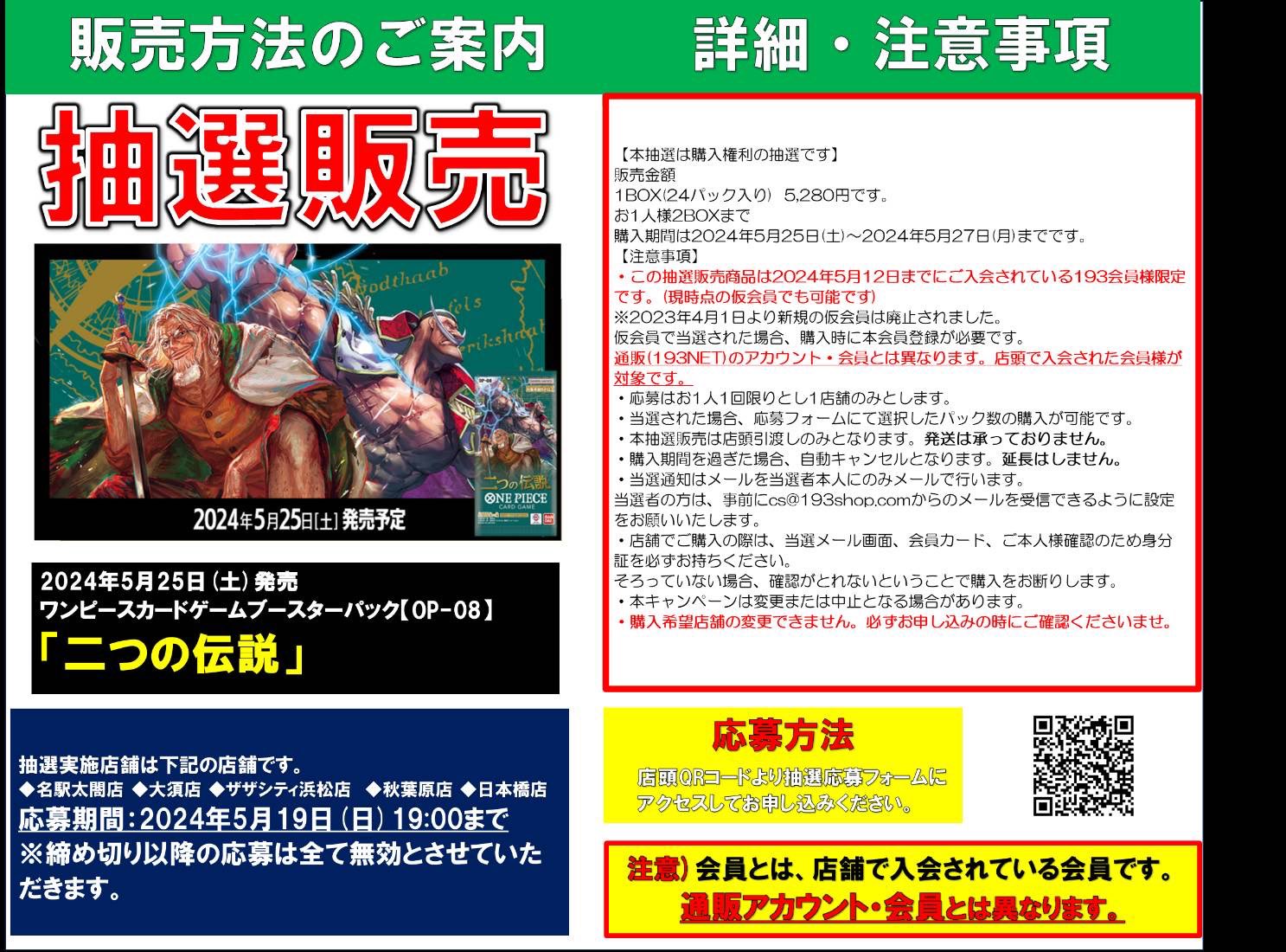 ワンピースカード 二つの伝説の抽選開始