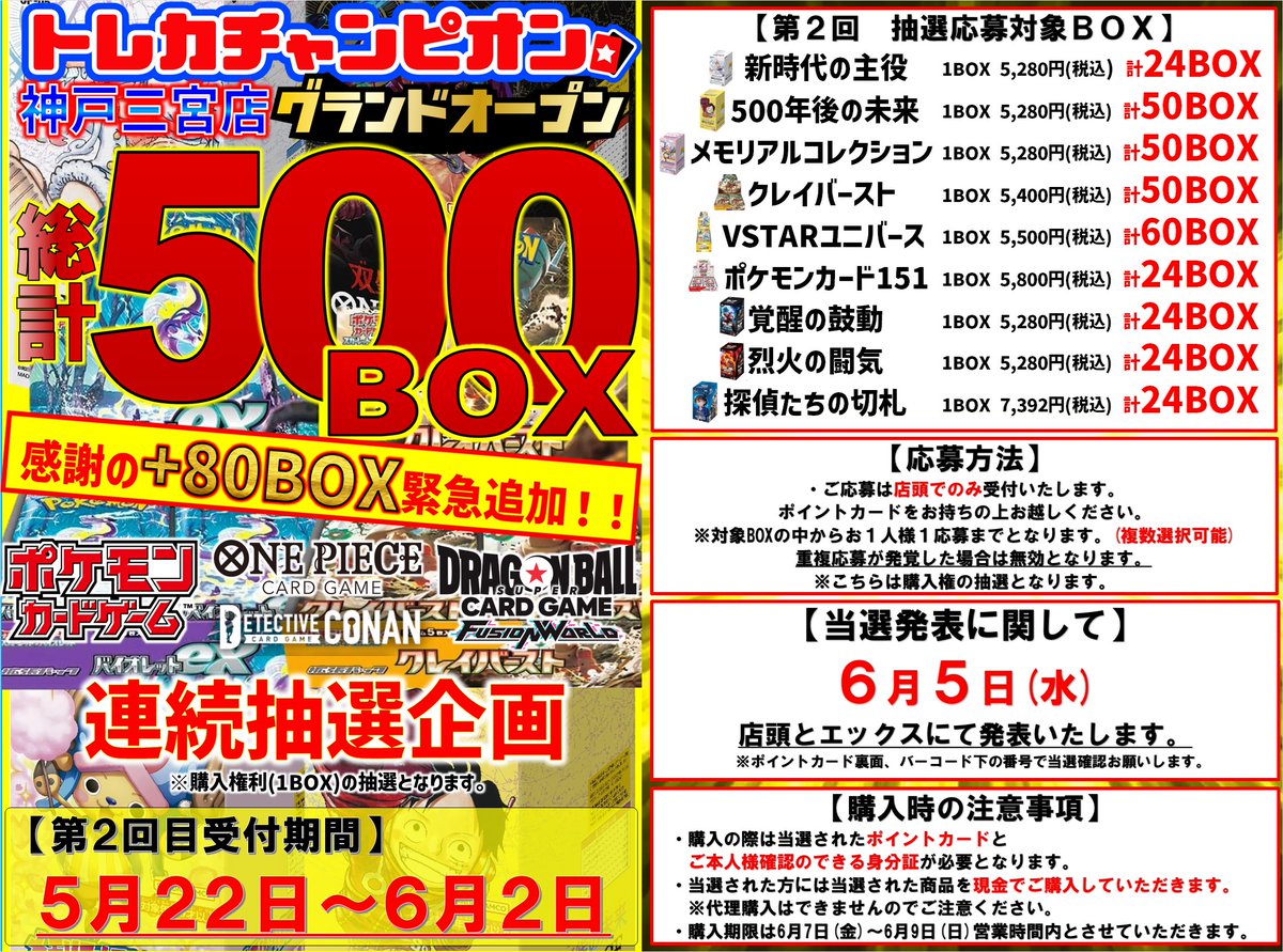 ヨドバシ、ビックカメラ以外の大手量販店やコンビニエンスストアなどの店舗でも、毎週の様にポケモンカード、ワンピースカード、遊戯王カードの店頭販売が行われています!
