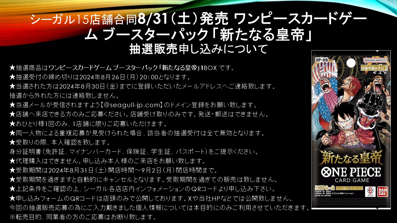 【竜星のPAO】ワンピースカード 新弾 抽選開始‼