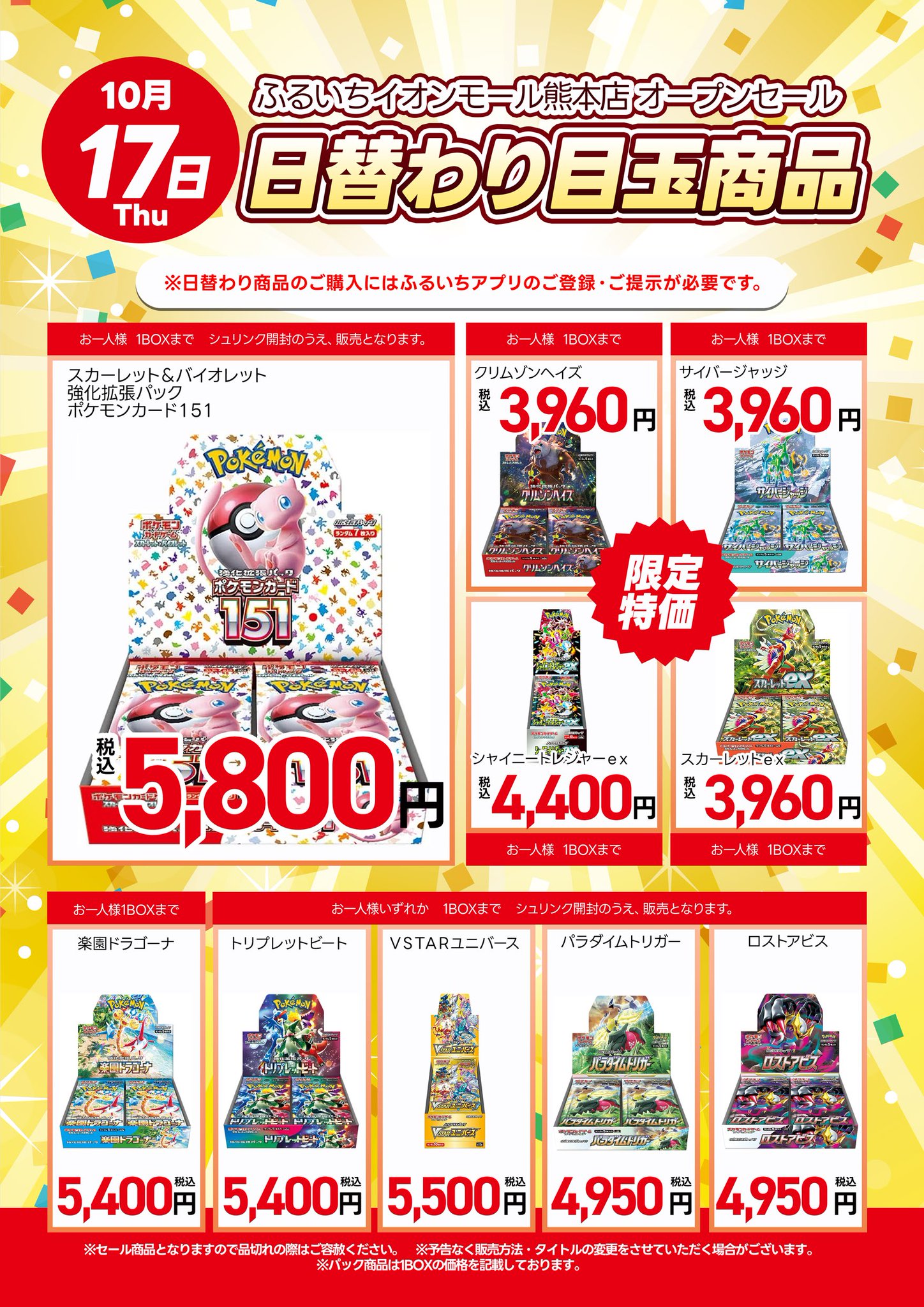 ヨドバシ、ビックカメラ以外の大手量販店やコンビニエンスストアなどの店舗でも、毎週の様にポケモンカード、ワンピースカード、遊戯王カードの店頭販売が行われています!