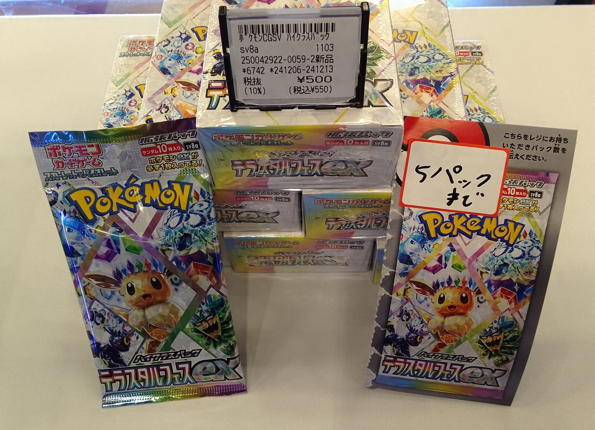 TSUTAYA春日井店で、テラスタルフェスex1BOX+何らかのBOX+サプライ・シングルカード等が入った12000円福袋が販売開始です!
