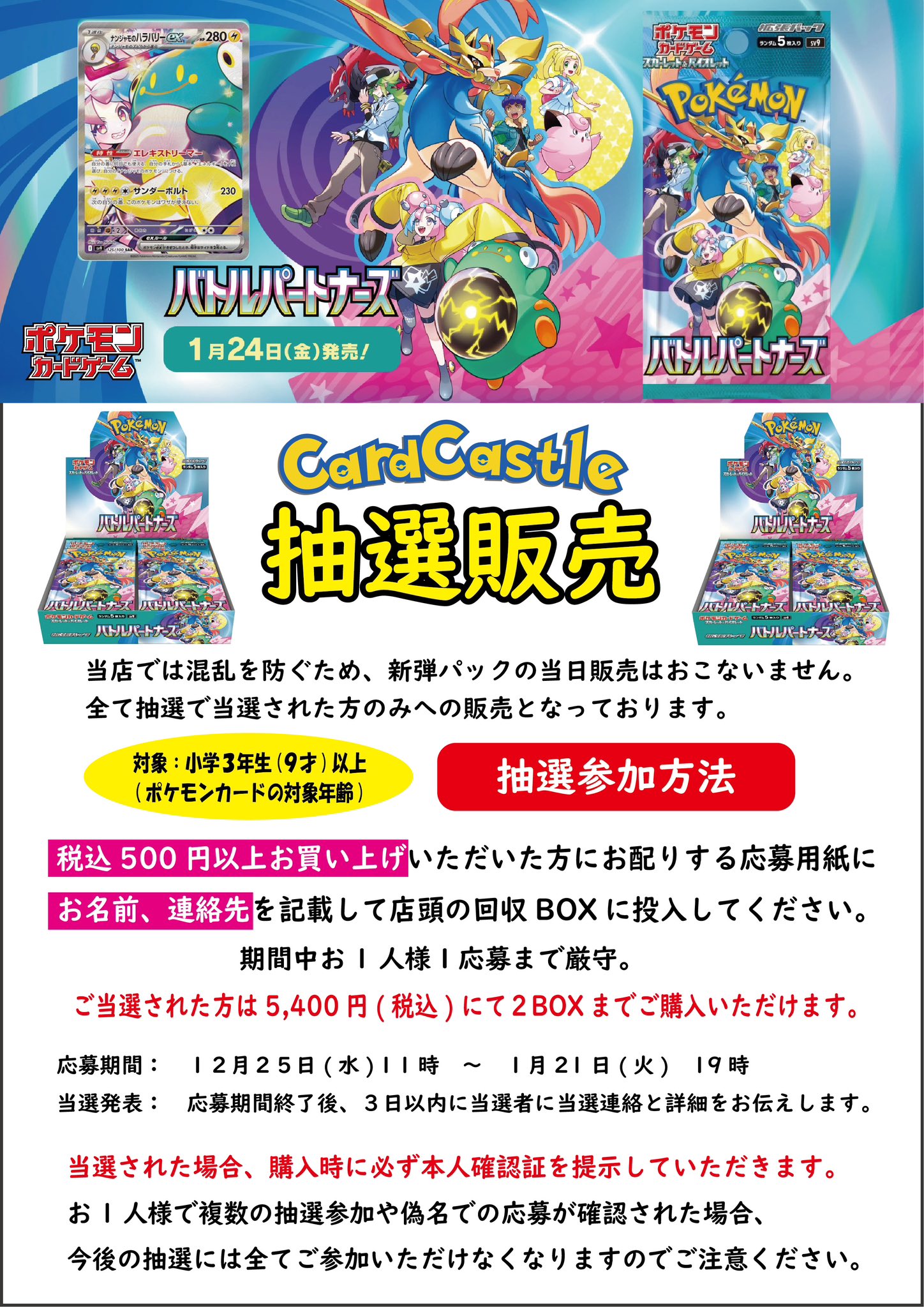 カードキャッスル姫路、明日から2BOX限バトルパートナーズ予約