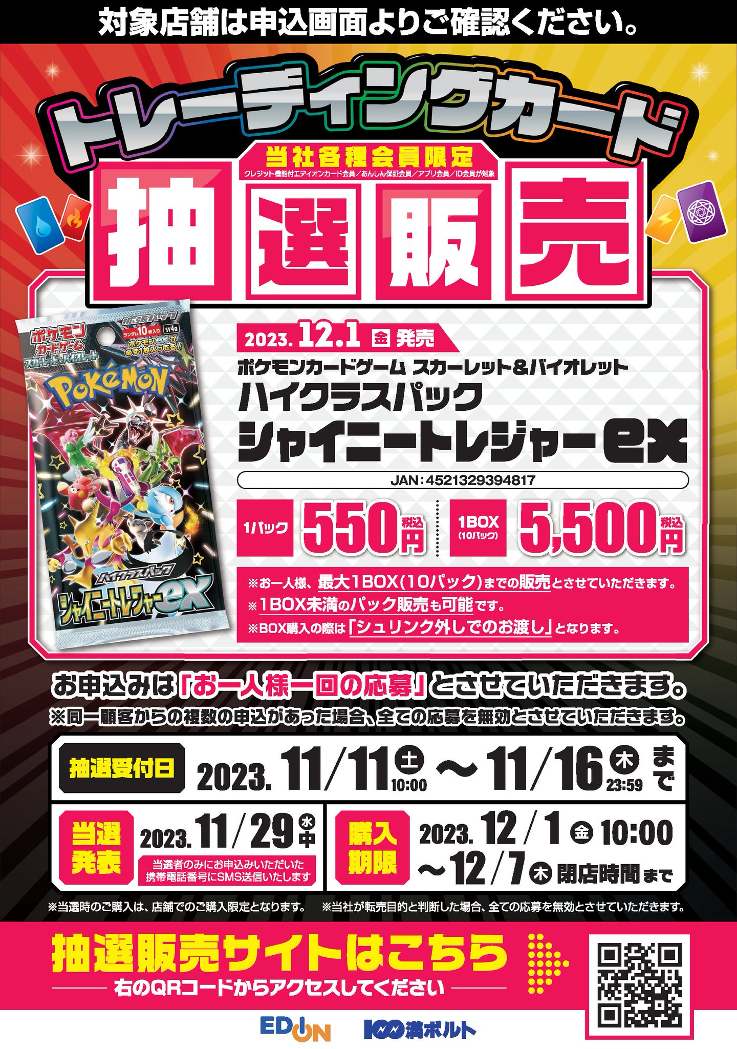 晴れる屋2『シャイニートレジャーex』抽選受付開始です。