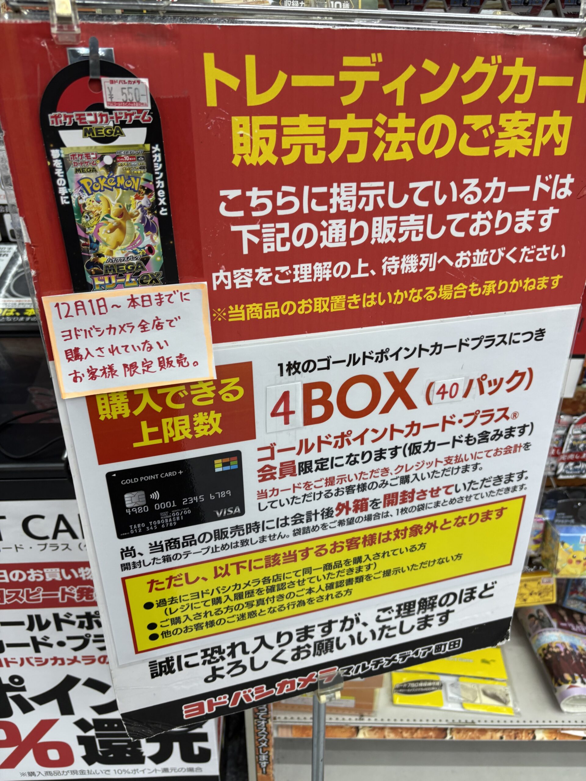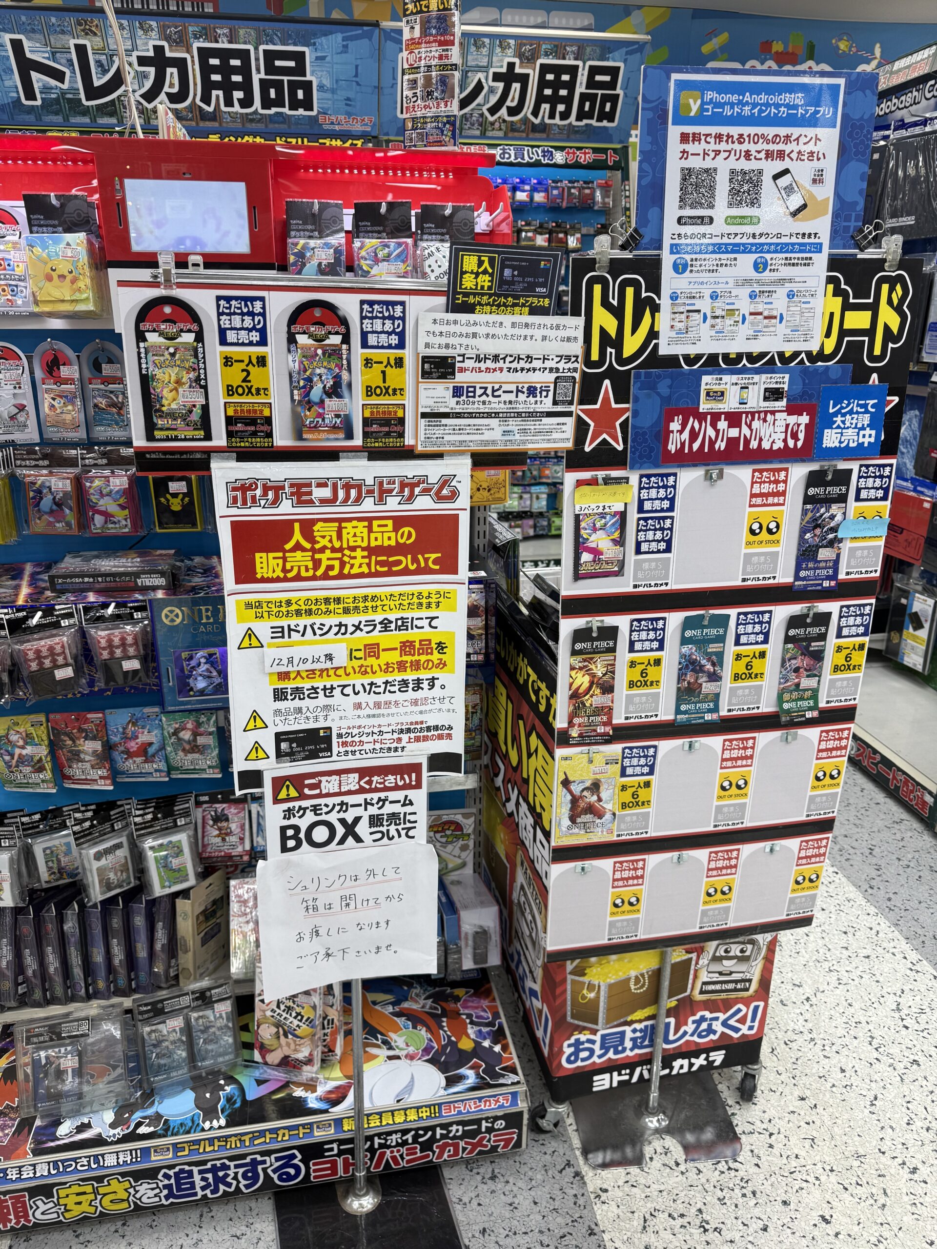 『ヨドバシカメラ』店頭でのポケカ、ワンピースカード、遊戯王カードのゲリラ販売情報。転売屋に負けずに定価入手する為の支援を実施✨