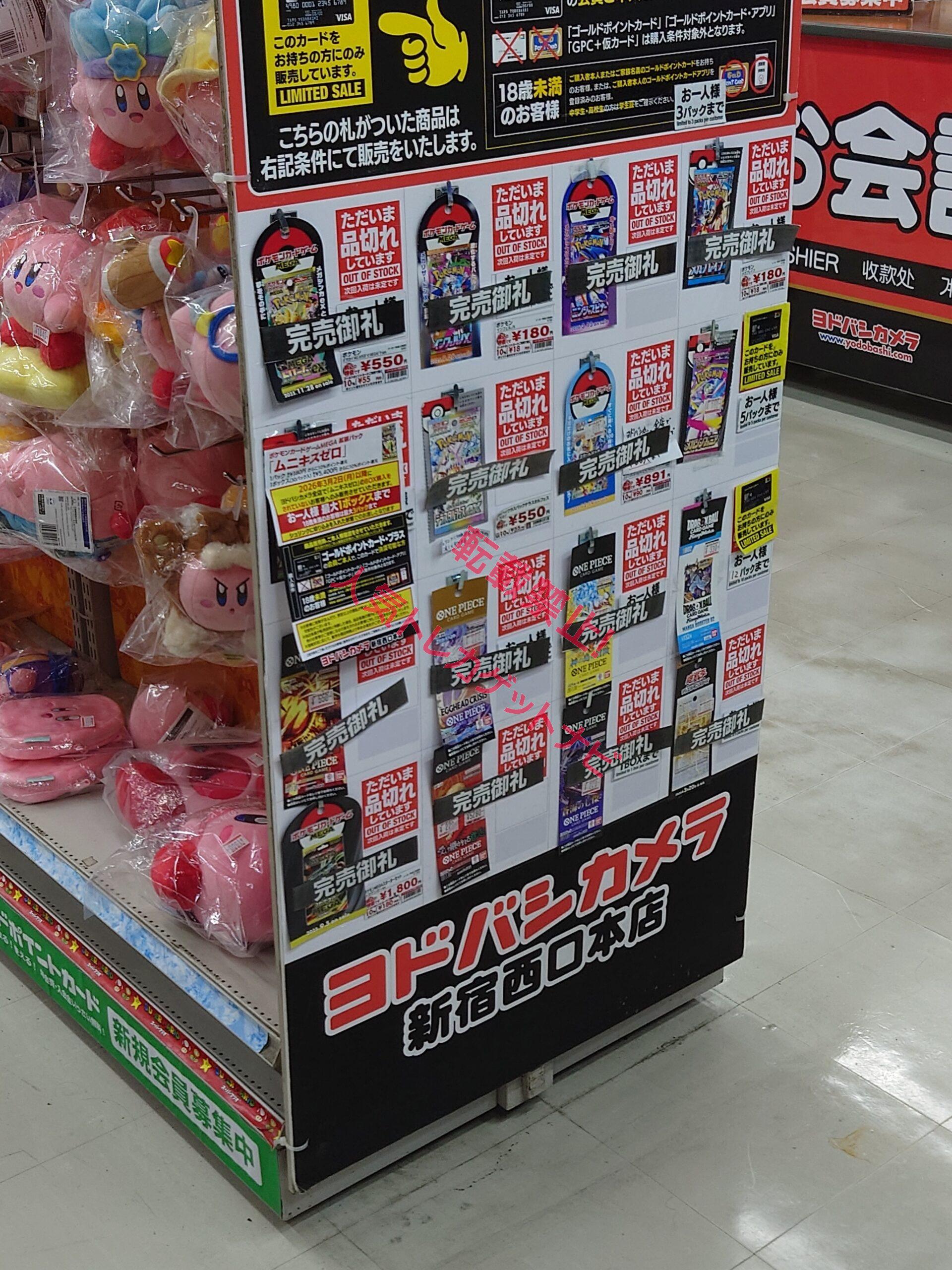 『ヨドバシカメラ』店頭でのポケカ、ワンピースカード、遊戯王カードのゲリラ販売情報。転売屋に負けずに定価入手する為の支援を実施✨