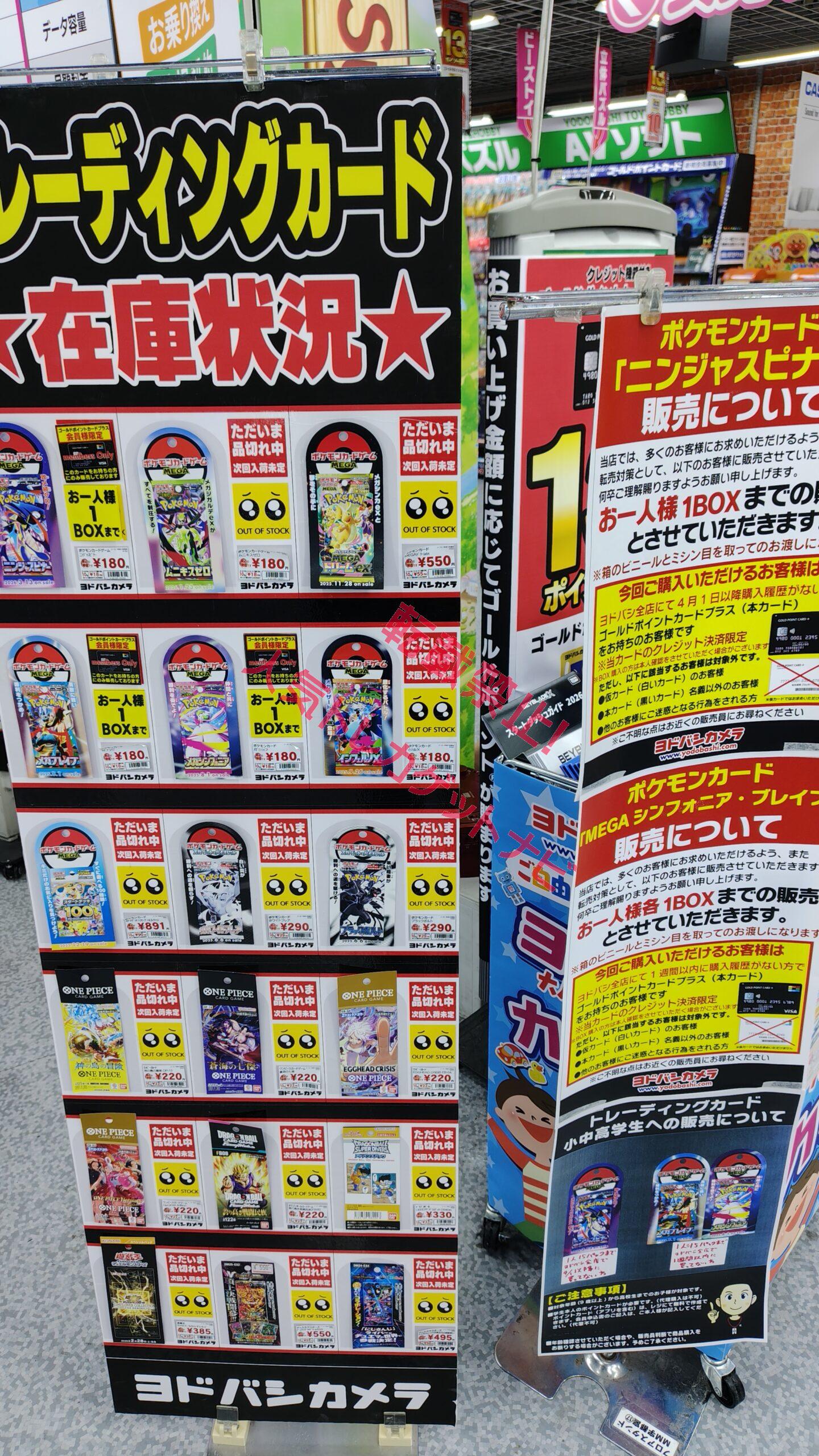『ヨドバシカメラ』店頭でのポケカ、ワンピースカード、遊戯王カードのゲリラ販売情報。転売屋に負けずに定価入手する為の支援を実施✨