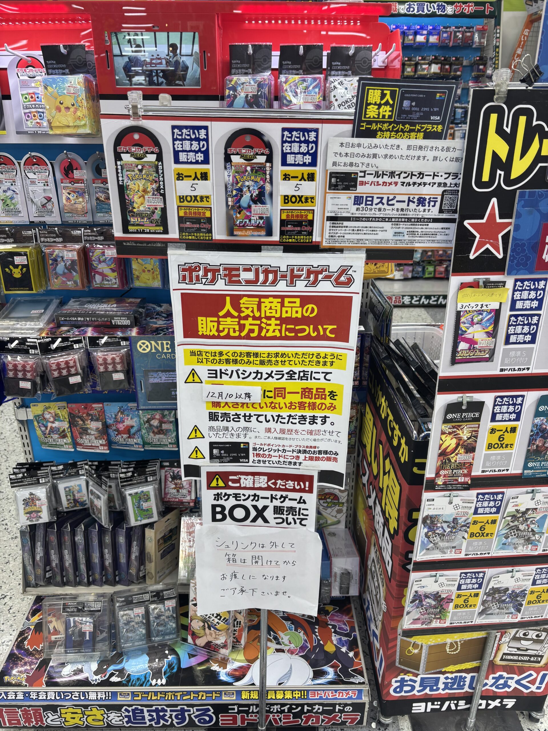 『ヨドバシカメラ』店頭でのポケカ、ワンピースカード、遊戯王カードのゲリラ販売情報。転売屋に負けずに定価入手する為の支援を実施✨