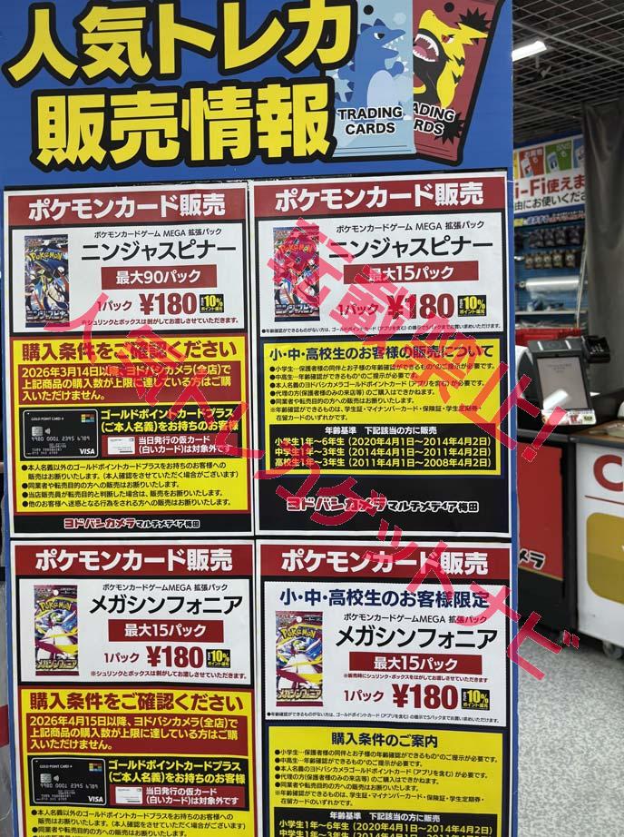 『ヨドバシカメラ』店頭でのポケカ、ワンピースカード、遊戯王カードのゲリラ販売情報。転売屋に負けずに定価入手する為の支援を実施✨